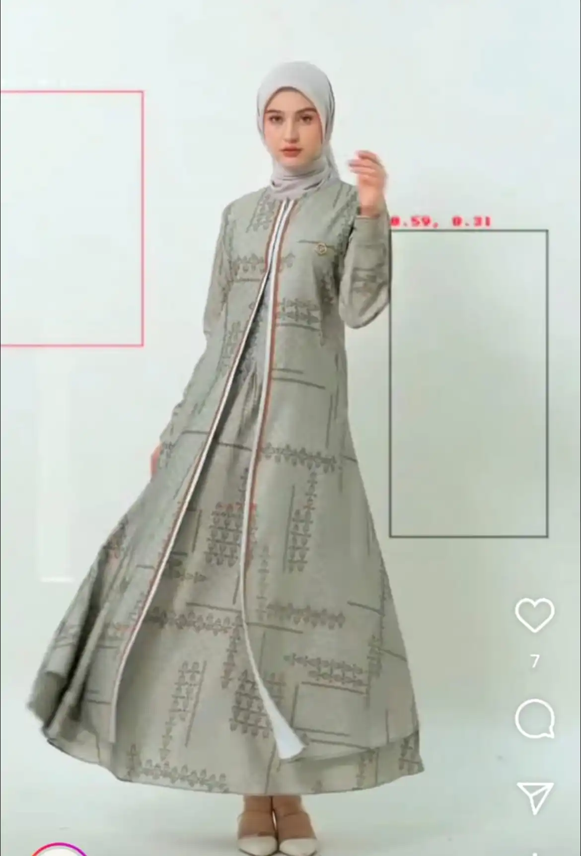 - Desain 2-in-1: Terdiri dari gamis inner polos dan outer panjang bermotif dengan ritsleting depan yang fungsional sekaligus stylish.